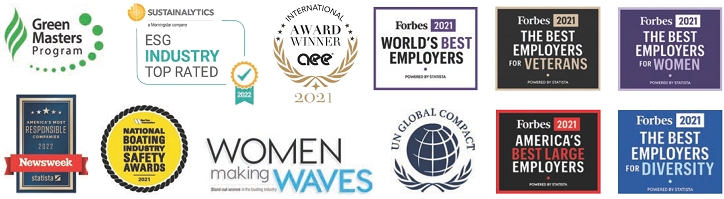 Our investments in our people and our culture have positioned us as an employer of choice, not just in the marine industry but across industries. As previously noted, Brunswick was ranked by Forbes in the top 20% of America’s Best Large employers, ahead of some of the largest and most well-known companies in the country, placing second in the Manufacturing and Engineering category. In 2021, Brunswick averaged one major award per week, including receiving national recognition by Forbes as a Best Employer for Women, Diversity, and Veterans, in addition to being honored for innovation, design, leadership and community activities.