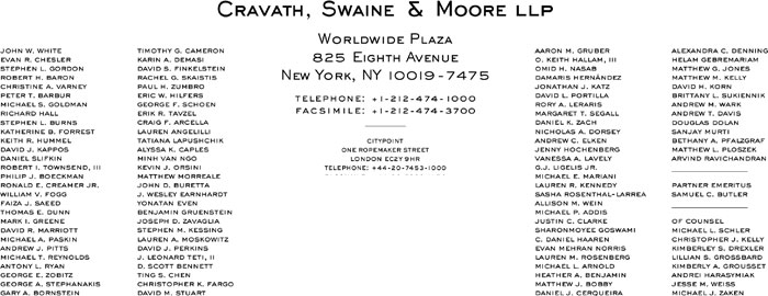 | /s/ Cravath, Swaine & Moore LLP |