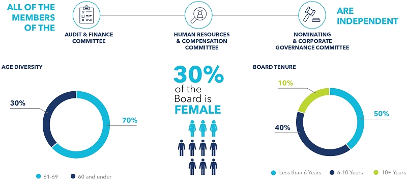In 2021, we refreshed the Board of Directors, welcoming Directors Reginald Fils-Aimé, former president and chief operating officer at Nintendo of America, and MaryAnn Wright, former group vice president of Global Engineering and Product Development, Power Solutions at Johnson Controls International. At the Annual Meeting this year, Jane Warner will retire from the Board. We thank her for her valuable service to the Company since 2015 and wish her the very best in her future endeavors.